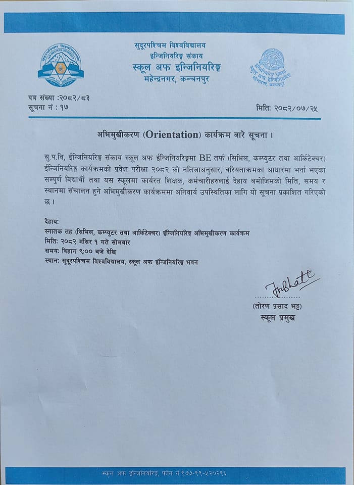 बि ई कार्यक्रमको प्रथम भर्ना सुचिमा छनौट भएका बिधार्थिहरुको अनिवार्य बायोमेट्रिक रुजु गर्ने सम्बन्धमा अत्यन्त जरुरि सूचना
