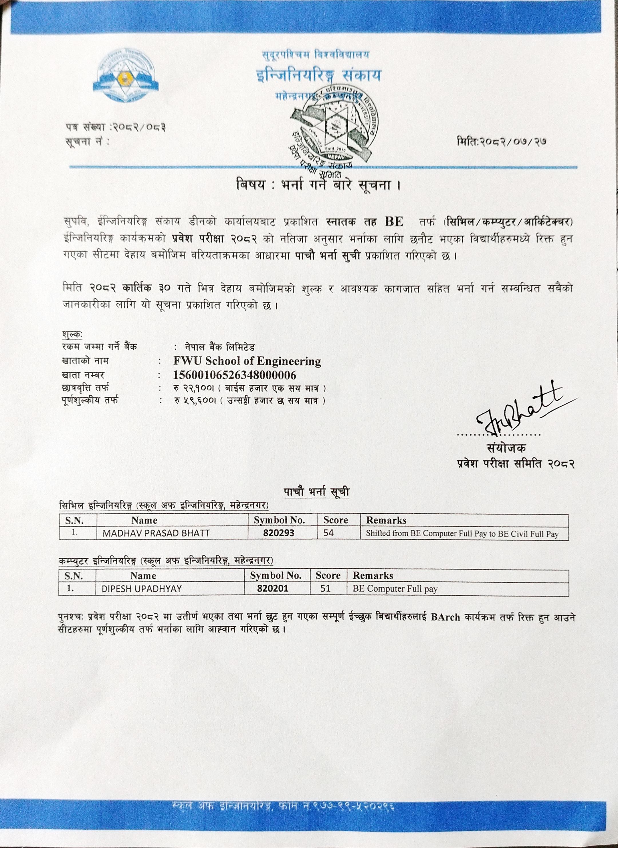 NOTICE: SECOND ADMISSION LIST OF STUDENTS (BE ADMISSION 2080)